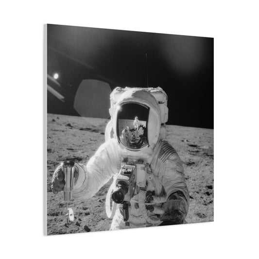 Astronaut Moon Landing Canvas Print - Black and White Wall Art